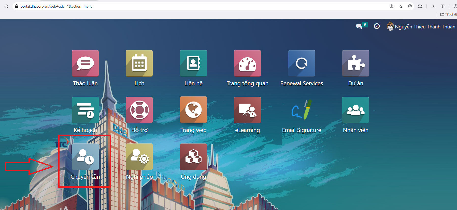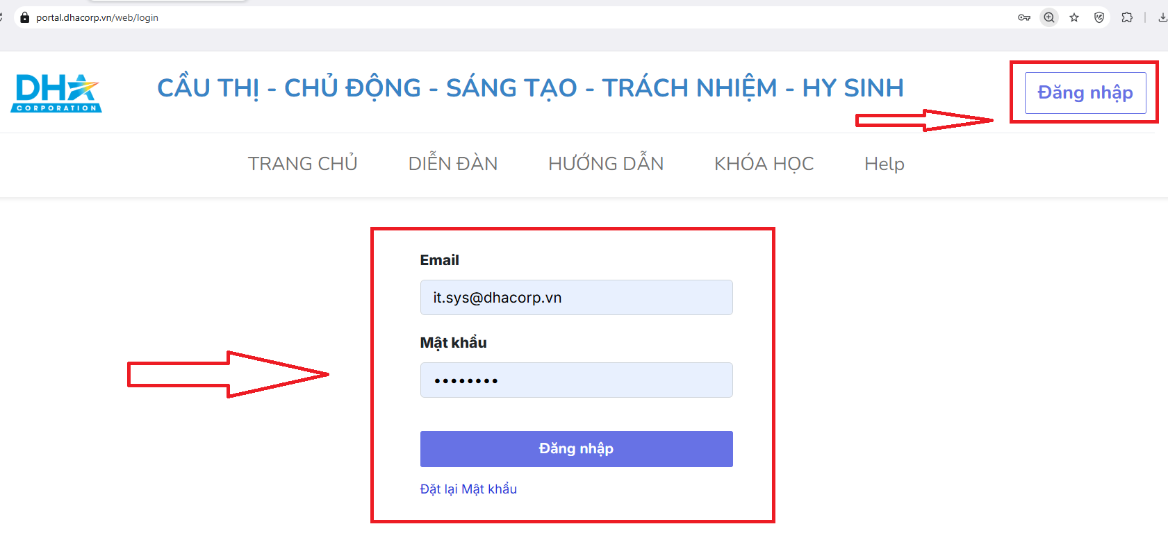 Cán bộ nhân viên truy cập qua Web: https://portal.dhacorp.vn