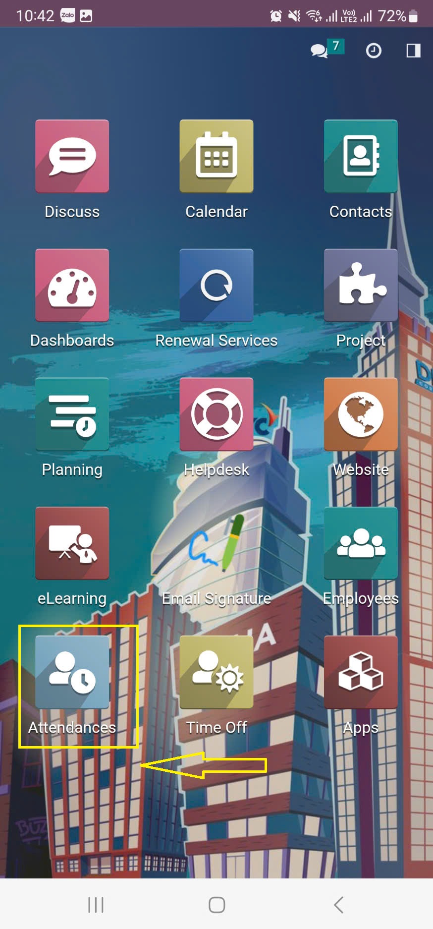 Bước 2: Truy cập vào module ứng dụng "Chuyên Cần" En "Attendances"